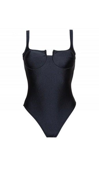 Details: One-piece swimsuit with underwiring and opening for cups; Removable cups; Knot closure on the back; High-cut