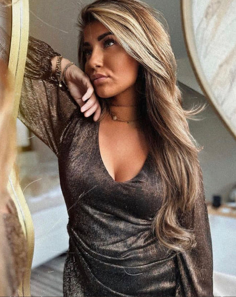 We know this statement piece will give you the ultimate holiday vibe. This dress has a viscose jersey lining and an extra design detail at the front so that it’s also lovely material.